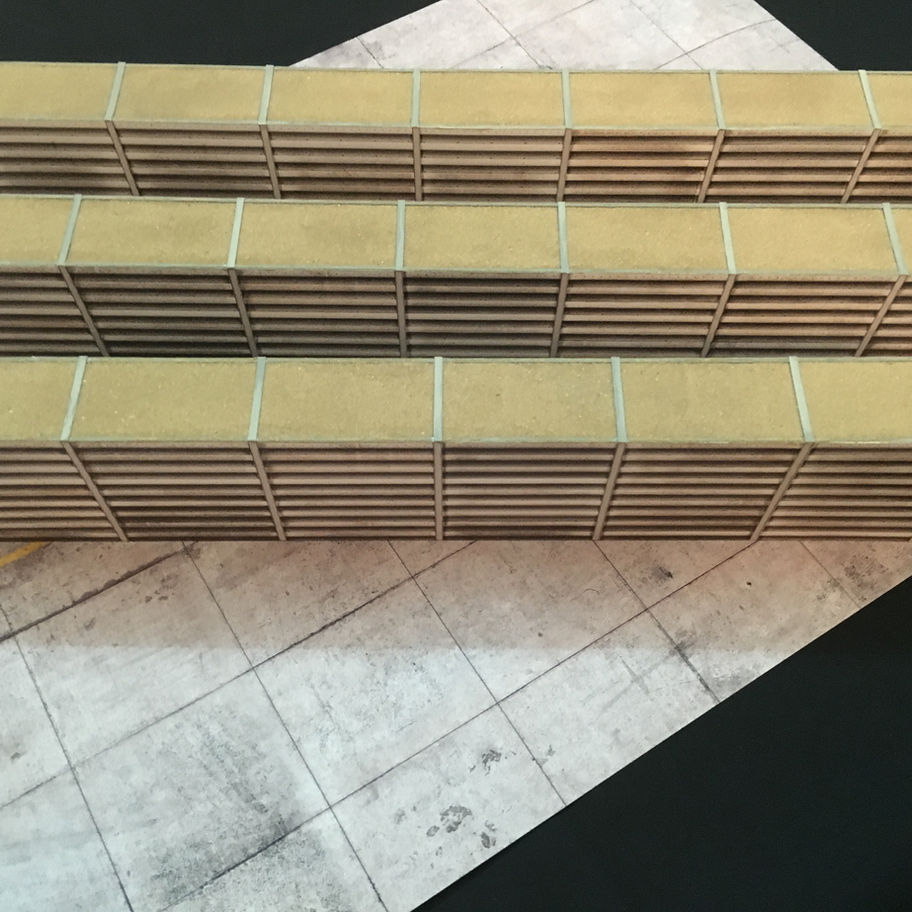 The walls are built from #4813 (Revetment Wall Sections) - the outer surfaces are PRINTED, not resin or plastic, no relief. 3 built walls are included: 2 side walls (longer) and 1 back wall (shorter). They represent, in 1/48 scale, a typical revetment wall complex used by the USAF during the South East Asia (Vietnam) conflict. Each wall includes an authentic earth fill. Dimensions for each side wall: L 473 mm; W 38 mm; H 81 mm. Dimensions for the back wall are similar, but for the length, which is 405 mm.